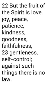 Fruits of the spirit verse nlt. Love joy peace patience kindness goodness faithfulness 23 gentleness and self control. There is no law against these things. New living translation nlt download the bible app now.